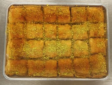 A refined Mediterranean delicacy of crisp phyllo, premium pistachios, and a delicate simple syrup-citrus glaze. Elegant, balanced, timeless.
