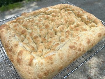 A classic Italian flatbread, soft and fluffy inside with a delicate golden crust. Baked with a generous drizzle of extra virgin olive oil, it has a rich, fragrant flavor and a tender bite, perfect for tearing and sharing and also do not forget, you can create your own pizzas on it!