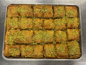 A refined Mediterranean delicacy of crisp phyllo, premium pistachios, and a delicate simple syrup-citrus glaze with a touch of Pumpkin spice Sugar dust